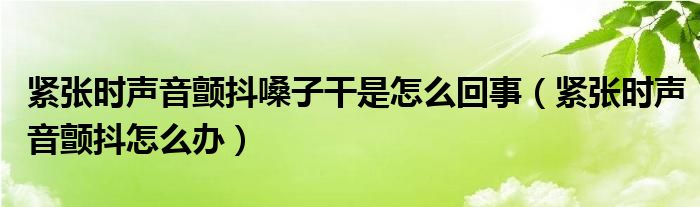 大家好,小教來為大家解答以上的問題。緊張時(shí)聲音顫抖嗓子干是怎么回事,緊張時(shí)聲音顫抖怎么辦很多人還不知道,現(xiàn)在讓我們一起來看看吧!