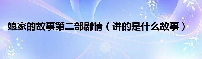 大家好,伊人來為大家解答以上問題。娘家的故事第二部劇情,講的是什么故事很多人還不知道,現(xiàn)在讓我們一起來看看吧!