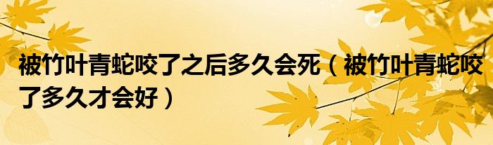 大家好,小教來為大家解答以上的問題。被竹葉青蛇咬了之后多久會死,被竹葉青蛇咬了多久才會好很多人還不知道,現(xiàn)在讓我們一起來看看吧!