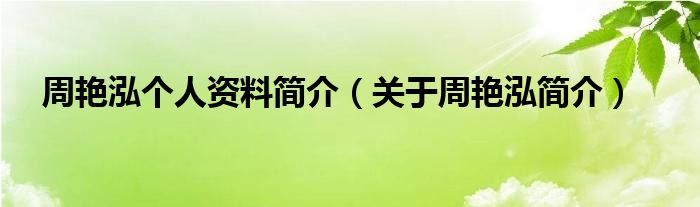 大家好,伊人來為大家解答以上問題。周艷泓個人資料簡介,關(guān)于周艷泓簡介很多人還不知道,現(xiàn)在讓我們一起來看看吧!