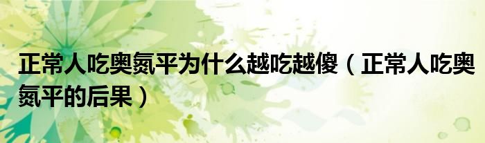 摘要大家好,知識小編來為大家解答以上的問題。正常人吃奧氮平為什么越吃越傻,正常人吃奧氮平的后果很多人還不知道,現(xiàn)在讓我們一起來看看吧!