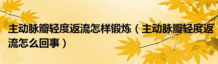 大家好,知識小編來為大家解答以上的問題。主動脈瓣輕度返流怎樣鍛煉,主動脈瓣輕度返流怎么回事很多人還不知道,現(xiàn)在讓我們一起來看看吧!