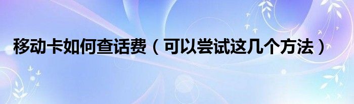 大家好,伊人來為大家解答以上問題。移動卡如何查話費,可以嘗試這幾個方法很多人還不知道,現(xiàn)在讓我們一起來看看吧!