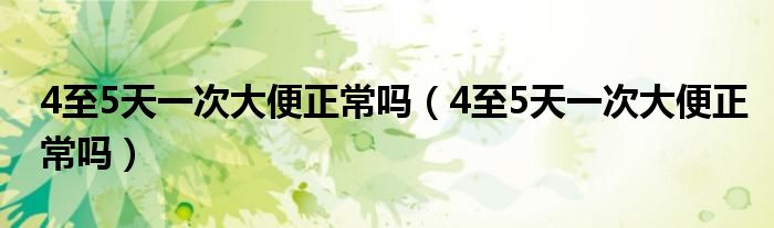 大家好,知識(shí)小編來(lái)為大家解答以上的問(wèn)題。4至5天一次大便正常嗎,4至5天一次大便正常嗎很多人還不知道,現(xiàn)在讓我們一起來(lái)看看吧!