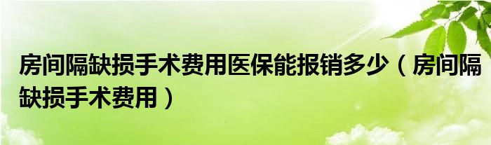 摘要大家好,知識小編來為大家解答以上的問題。房間隔缺損手術(shù)費(fèi)用醫(yī)保能報(bào)銷多少,房間隔缺損手術(shù)費(fèi)用很多人還不知道,現(xiàn)在讓我們一起來看看吧