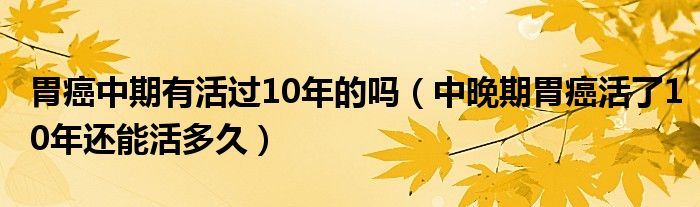 大家好,知識小編來為大家解答以上的問題。胃癌中期有活過10年的嗎,中晚期胃癌活了10年還能活多久很多人還不知道,現(xiàn)在讓我們一起來看看吧!