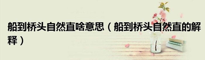 摘要大家好,伊人來為大家解答以上問題。船到橋頭自然直啥意思,船到橋頭自然直的解釋很多人還不知道,現(xiàn)在讓我們一起來看看吧!1、過了橋就過