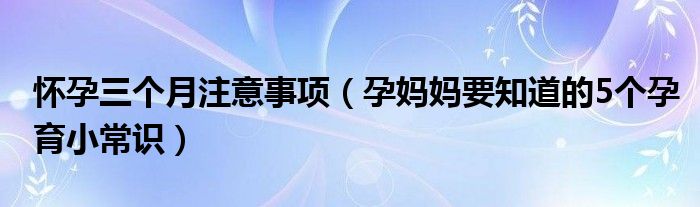 大家好,伊人來(lái)為大家解答以上問(wèn)題。懷孕三個(gè)月注意事項(xiàng),孕媽媽要知道的5個(gè)孕育小常識(shí)很多人還不知道,現(xiàn)在讓我們一起來(lái)看看吧!