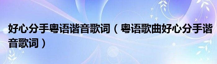 大家好,伊人來為大家解答以上問題。好心分手粵語諧音歌詞,粵語歌曲好心分手諧音歌詞很多人還不知道,現(xiàn)在讓我們一起來看看吧!