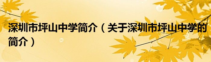 大家好,伊人來為大家解答以上問題。深圳市坪山中學(xué)簡介,關(guān)于深圳市坪山中學(xué)的簡介很多人還不知道,現(xiàn)在讓我們一起來看看吧!