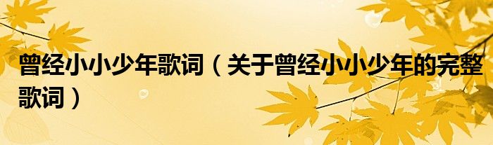 大家好,伊人來為大家解答以上問題。曾經(jīng)小小少年歌詞,關于曾經(jīng)小小少年的完整歌詞很多人還不知道,現(xiàn)在讓我們一起來看看吧!