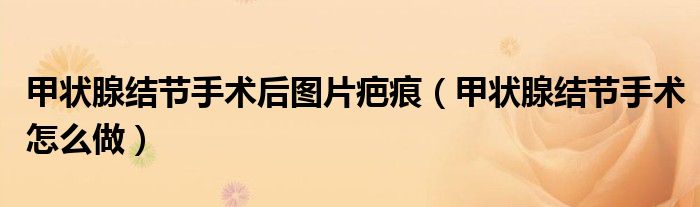 大家好,知識(shí)小編來(lái)為大家解答以上的問(wèn)題。甲狀腺結(jié)節(jié)手術(shù)后圖片疤痕,甲狀腺結(jié)節(jié)手術(shù)怎么做很多人還不知道,現(xiàn)在讓我們一起來(lái)看看吧!