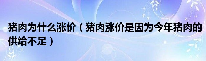 大家好,伊人來(lái)為大家解答以上問(wèn)題。豬肉為什么漲價(jià),豬肉漲價(jià)是因?yàn)榻衲曦i肉的供給不足很多人還不知道,現(xiàn)在讓我們一起來(lái)看看吧!