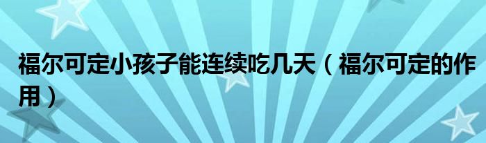 大家好,知識(shí)小編來為大家解答以上的問題。福爾可定小孩子能連續(xù)吃幾天,福爾可定的作用很多人還不知道,現(xiàn)在讓我們一起來看看吧!