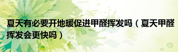 大家好,小生來為大家講解下。夏天有必要開地暖促進(jìn)甲醛揮發(fā)嗎,夏天甲醛揮發(fā)會更快嗎很多人還不知道,現(xiàn)在讓我們一起來看看吧!