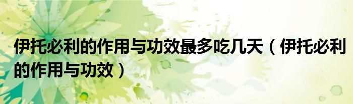 摘要大家好,知識小編來為大家解答以上的問題。伊托必利的作用與功效最多吃幾天,伊托必利的作用與功效很多人還不知道,現(xiàn)在讓我們一起來看看吧
