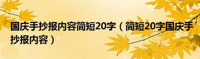 大家好,伊人來為大家解答以上問題。國(guó)慶手抄報(bào)內(nèi)容簡(jiǎn)短20字,簡(jiǎn)短20字國(guó)慶手抄報(bào)內(nèi)容很多人還不知道,現(xiàn)在讓我們一起來看看吧!