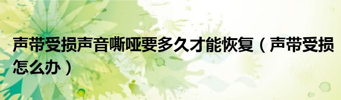 摘要大家好,知識小編來為大家解答以上的問題。聲帶受損聲音嘶啞要多久才能恢復(fù),聲帶受損怎么辦很多人還不知道,現(xiàn)在讓我們一起來看看吧!聲帶