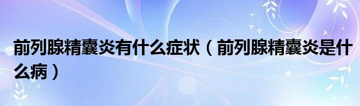 大家好,知識小編來為大家解答以上的問題。前列腺精囊炎有什么癥狀,前列腺精囊炎是什么病很多人還不知道,現(xiàn)在讓我們一起來看看吧!