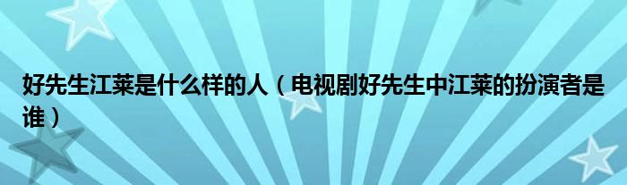 大家好,小生來(lái)為大家講解下。好先生江萊是什么樣的人,電視劇好先生中江萊的扮演者是誰(shuí)很多人還不知道,現(xiàn)在讓我們一起來(lái)看看吧!