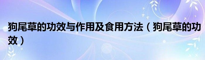 2、狗尾草具有祛風明目的作用,可用于治療目赤、眼痛、腹脹、癬、瘡、疣。狗尾草一般煎服,也可水煎后敷患處,還可有清熱利濕、祛風明目、殺蟲解毒之功效。