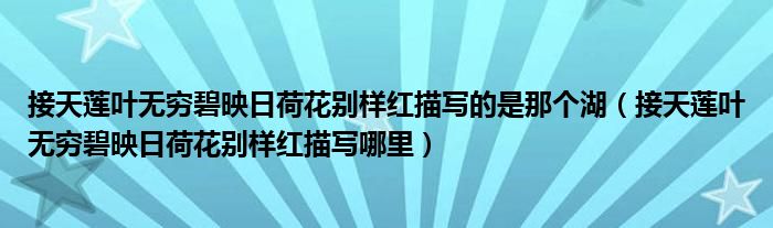 大家好,伊人來(lái)為大家解答以上問(wèn)題。接天蓮葉無(wú)窮碧映日荷花別樣紅描寫(xiě)的是那個(gè)湖,接天蓮葉無(wú)窮碧映日荷花別樣紅描寫(xiě)哪里很多人還不知道,現(xiàn)在讓我們一起來(lái)看看吧!