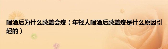 大家好,知識小編來為大家解答以上的問題。喝酒后為什么膝蓋會疼,年輕人喝酒后膝蓋疼是什么原因引起的很多人還不知道,現(xiàn)在讓我們一起來看看吧!