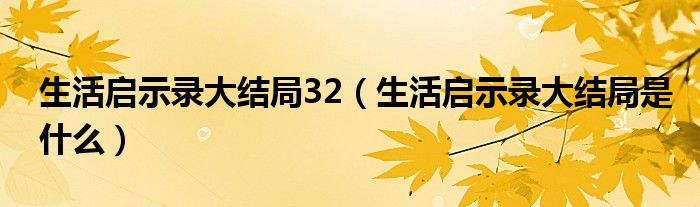 大家好,小生來(lái)為大家講解下。生活啟示錄大結(jié)局32,生活啟示錄大結(jié)局是什么很多人還不知道,現(xiàn)在讓我們一起來(lái)看看吧!