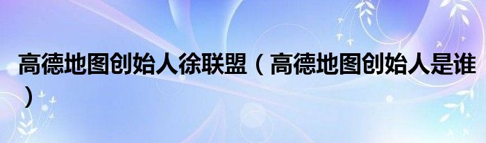 大家好,小生來為大家講解下。高德地圖創(chuàng)始人徐聯(lián)盟,高德地圖創(chuàng)始人是誰很多人還不知道,現(xiàn)在讓我們一起來看看吧!
