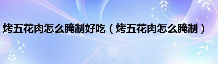 大家好,小生來為大家講解下??疚寤ㄈ庠趺措缰坪贸?,烤五花肉怎么腌制很多人還不知道,現(xiàn)在讓我們一起來看看吧!