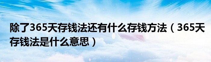 大家好,小生來(lái)為大家講解下。除了365天存錢法還有什么存錢方法,365天存錢法是什么意思很多人還不知道,現(xiàn)在讓我們一起來(lái)看看吧!