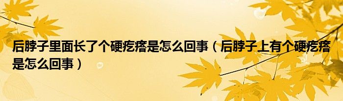 摘要大家好,知識(shí)小編來(lái)為大家解答以上的問(wèn)題。后脖子里面長(zhǎng)了個(gè)硬疙瘩是怎么回事,后脖子上有個(gè)硬疙瘩是怎么回事很多人還不知道,現(xiàn)在讓我們一