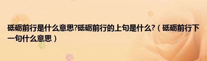 大家好,小生來(lái)為大家講解下。砥礪前行是什么意思?砥礪前行的上句是什么?,砥礪前行下一句什么意思很多人還不知道,現(xiàn)在讓我們一起來(lái)看看吧!