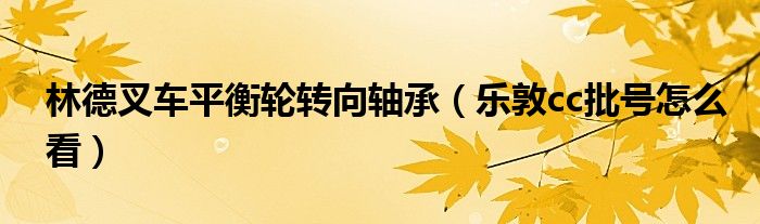大家好,小生來(lái)為大家講解下。林德叉車(chē)平衡輪轉(zhuǎn)向軸承,樂(lè)敦cc批號(hào)怎么看很多人還不知道,現(xiàn)在讓我們一起來(lái)看看吧!