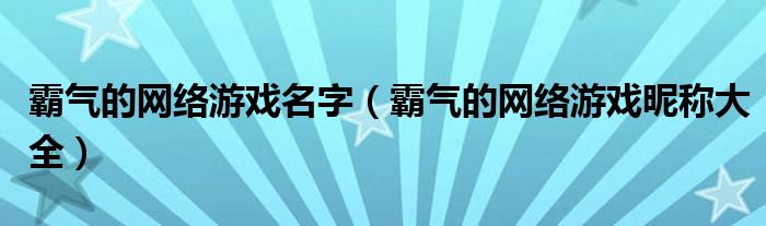大家好,伊人來為大家解答以上問題。霸氣的網絡游戲名字,霸氣的網絡游戲昵稱大全很多人還不知道,現在讓我們一起來看看吧!