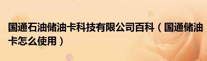 大家好,小生來為大家講解下。國(guó)通石油儲(chǔ)油卡科技有限公司百科,國(guó)通儲(chǔ)油卡怎么使用很多人還不知道,現(xiàn)在讓我們一起來看看吧!