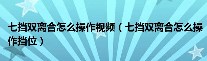 大家好,小生來為大家講解下。七擋雙離合怎么操作視頻,七擋雙離合怎么操作擋位很多人還不知道,現(xiàn)在讓我們一起來看看吧!