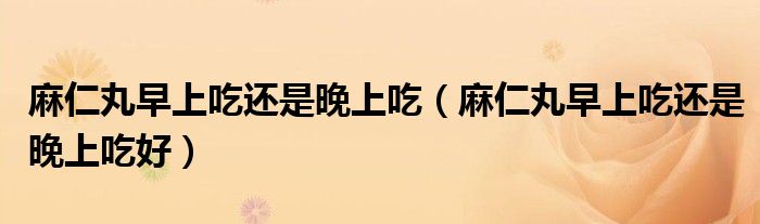 大家好,知識小編來為大家解答以上的問題。麻仁丸早上吃還是晚上吃,麻仁丸早上吃還是晚上吃好很多人還不知道,現(xiàn)在讓我們一起來看看吧!
