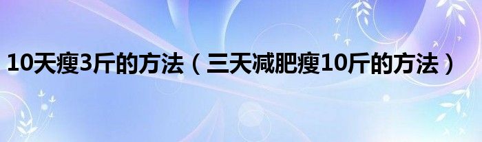 想三天瘦10斤,不太現實。減肥是需要長期堅持的事情,不是幾天就能瘦很多的。如果你想減肥并擁有苗條的身材,你也應該保持健康。建議控制飲食,適當體育鍛煉,減脂減肥。這種方法雖然減肥時間長,但有益健康,能增加心肺功能。本文到此結束,希望對大家有所幫助。