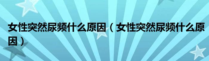 摘要大家好,知識小編來為大家解答以上的問題。女性突然尿頻什么原因,女性突然尿頻什么原因很多人還不知道,現(xiàn)在讓我們一起來看看吧!女性突然
