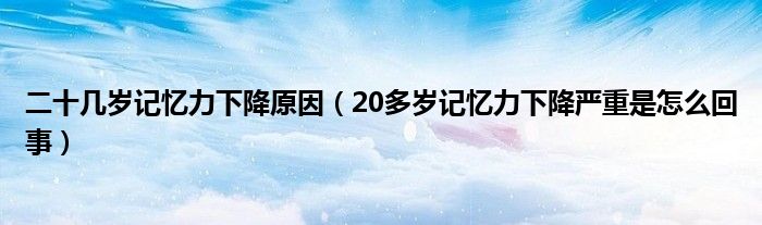 大家好,知識小編來為大家解答以上的問題。二十幾歲記憶力下降原因,20多歲記憶力下降嚴(yán)重是怎么回事很多人還不知道,現(xiàn)在讓我們一起來看看吧!