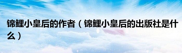 大家好,小生來為大家講解下。錦鯉小皇后的作者,錦鯉小皇后的出版社是什么很多人還不知道,現(xiàn)在讓我們一起來看看吧!