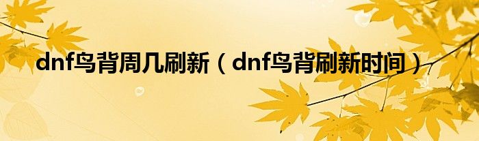 大家好,小生來為大家講解下。dnf鳥背周幾刷新,dnf鳥背刷新時(shí)間很多人還不知道,現(xiàn)在讓我們一起來看看吧!
