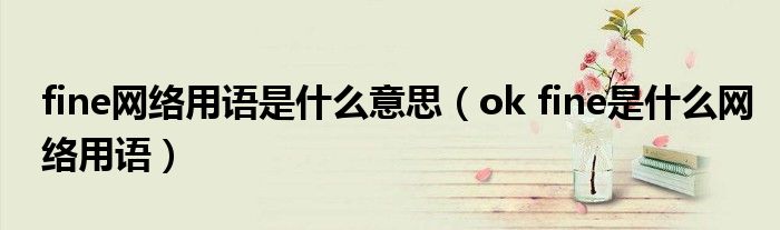 摘要 大家好,小生來為大家講解下。fine網(wǎng)絡(luò)用語是什么意思,ok fine是什么網(wǎng)絡(luò)用語很多人還不知道,現(xiàn)在讓我們一起來看看吧!1、Okfine,一個