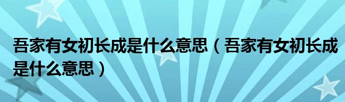 大家好,小生來為大家講解下。吾家有女初長成是什么意思,吾家有女初長成是什么意思很多人還不知道,現(xiàn)在讓我們一起來看看吧!