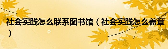 大家好,小生來(lái)為大家講解下。社會(huì)實(shí)踐怎么聯(lián)系圖書(shū)館,社會(huì)實(shí)踐怎么蓋章很多人還不知道,現(xiàn)在讓我們一起來(lái)看看吧!