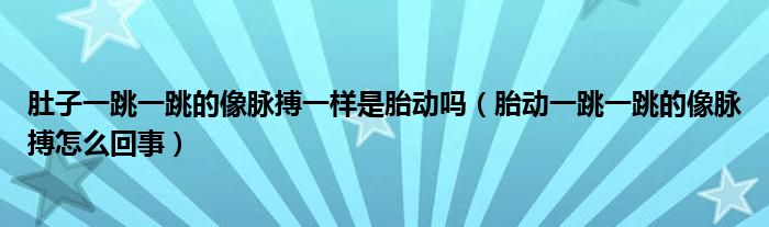 摘要大家好,知識小編來為大家解答以上的問題。肚子一跳一跳的像脈搏一樣是胎動嗎,胎動一跳一跳的像脈搏怎么回事很多人還不知道,現(xiàn)在讓我們一