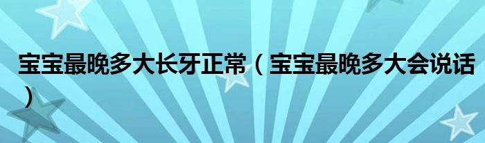 摘要大家好,知識(shí)小編來(lái)為大家解答以上的問(wèn)題。寶寶最晚多大長(zhǎng)牙正常,寶寶最晚多大會(huì)說(shuō)話很多人還不知道,現(xiàn)在讓我們一起來(lái)看看吧!大多數(shù)嬰兒