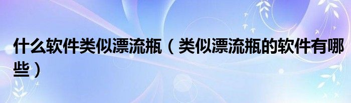大家好,小生來為大家講解下。什么軟件類似漂流瓶,類似漂流瓶的軟件有哪些很多人還不知道,現(xiàn)在讓我們一起來看看吧!