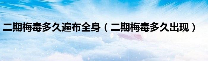 大家好,知識小編來為大家解答以上的問題。二期梅毒多久遍布全身,二期梅毒多久出現(xiàn)很多人還不知道,現(xiàn)在讓我們一起來看看吧!